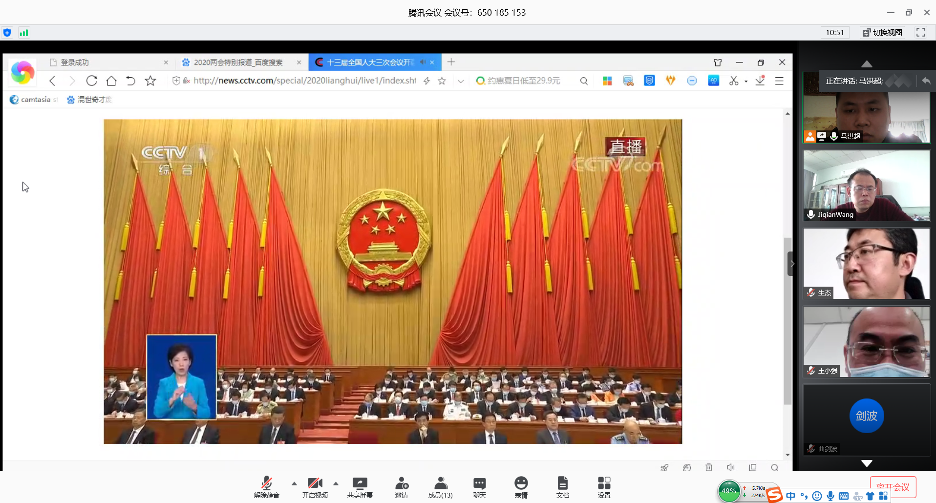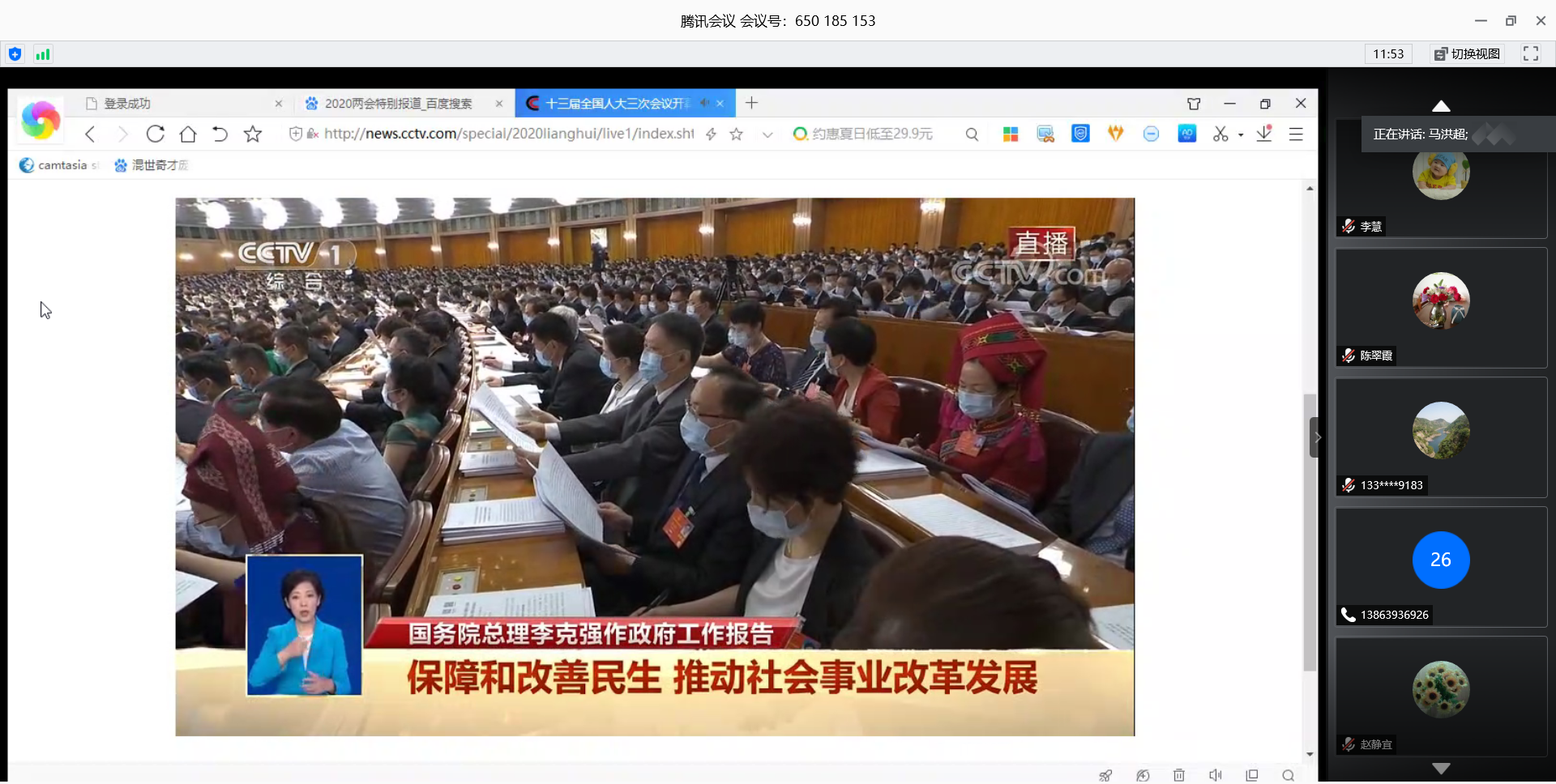 2020年5月22日上午,第十三届全国人民代表大会第三次会议在北京召开。为学习会议精神,生物中心党支部组织全体党员通过腾讯会议方式,集体在线收看了李克强总理的政府工作报告。