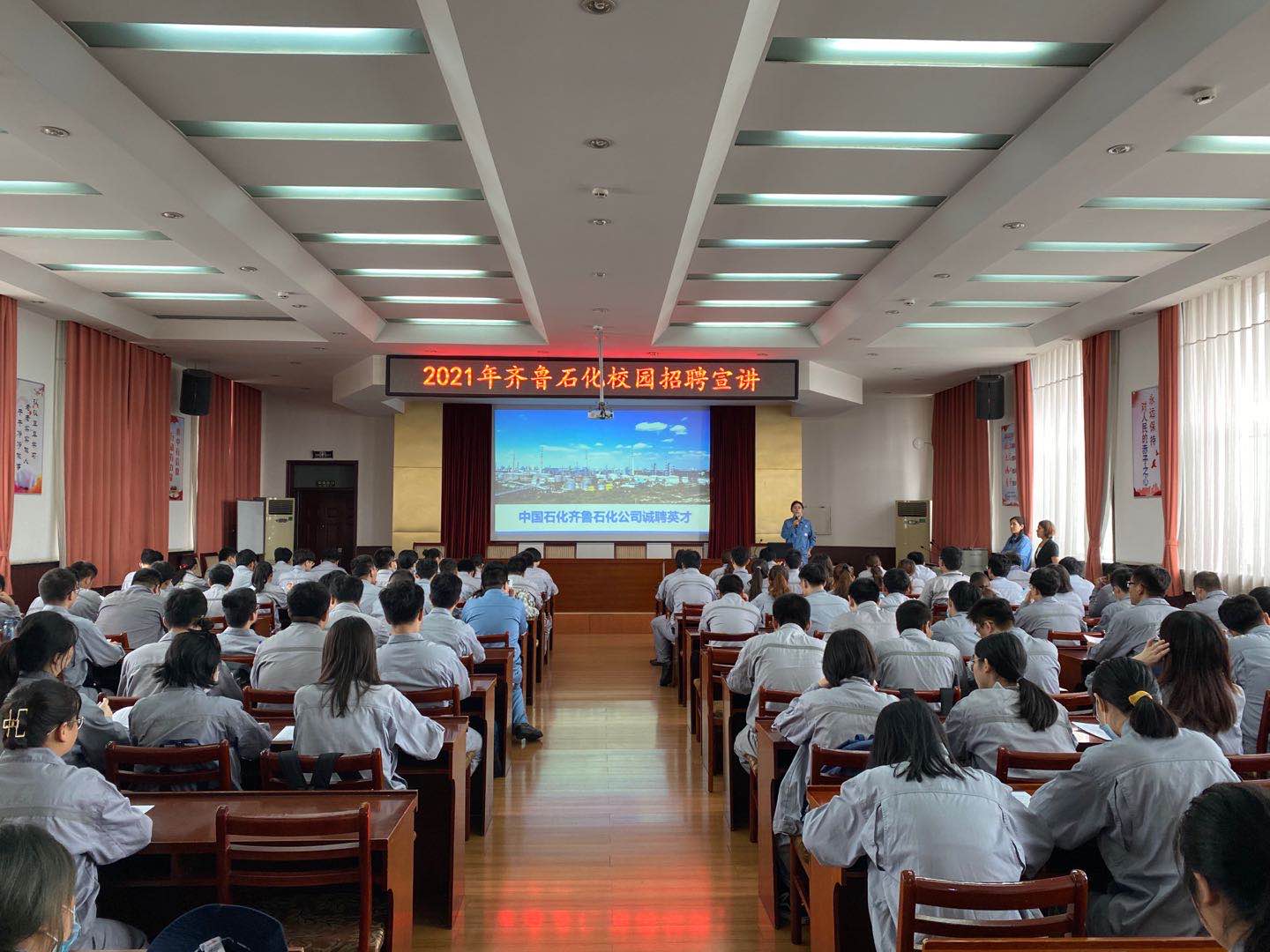 9月15日上午,由齐鲁石化人事处组织,在齐鲁石化中齐宾馆召开2021年校园招聘宣讲会。我校正在齐鲁石化公司进行生产实习的化工、环境、化学专业师生参加了此次宣讲会。