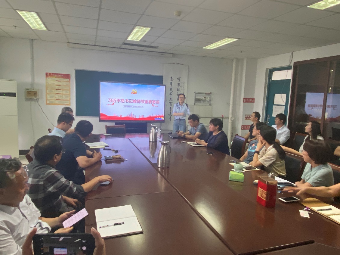 支部组织委员于筱溪带领大家一起重温了习近平总书记教师节重要寄语。习近平总书记高度肯定了广大教师在特殊时期坚持奋战在抗击疫情和“停课