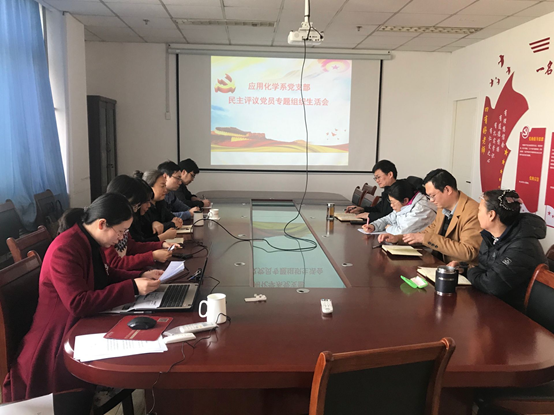 3月11日下午,应用化学系党支部在工科楼A629召开组织生活会暨民主评议党员工作,会议由支部书记杨修洁同志主持,应化全体党员参会。