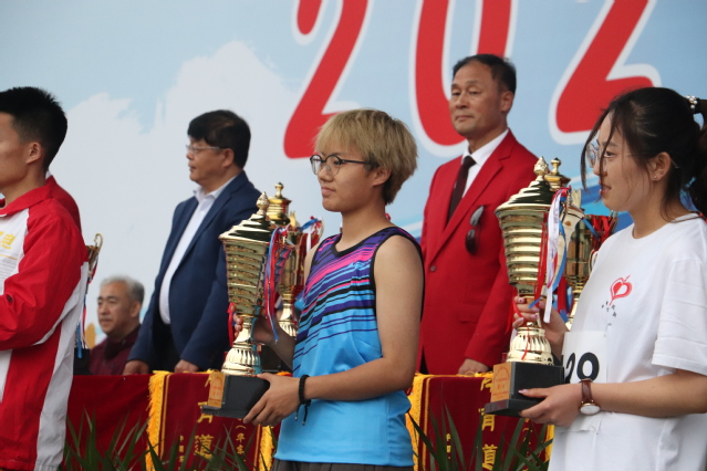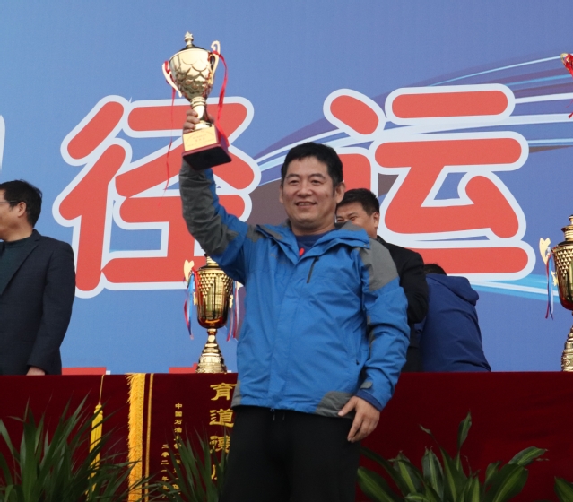 院部教工团体总分第二名,学院工会主席杜峰上台领奖