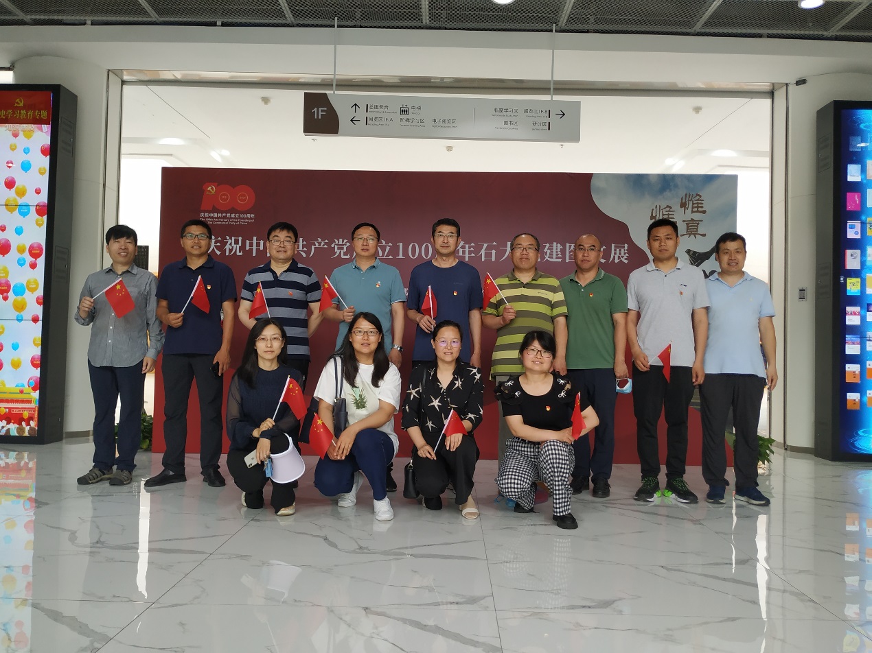 随后,曲剑波又带领大家参观了位于校图书馆的“庆祝中国共产党成立100周年石大党建图文展”。展览以图文并茂的方式展示了石油大学的发展历史。在党的领导下,石油大学因油而生,因油而强。七十余年里,涌现出了一大批为我国石油事业奉献青春,甘当孺子牛的先进党员。他们坚守初心,勇担使命,在极其困难的条件下发展学校、培养学生,为我国石油事业的发展做出来突出贡献。参观结束后,党员同志们纷纷表示,作为新一代石大人,我们要传承先辈的精神,爱党爱校,以蓬勃的热情投入到工作中去,为我校双一流建设添砖加瓦。