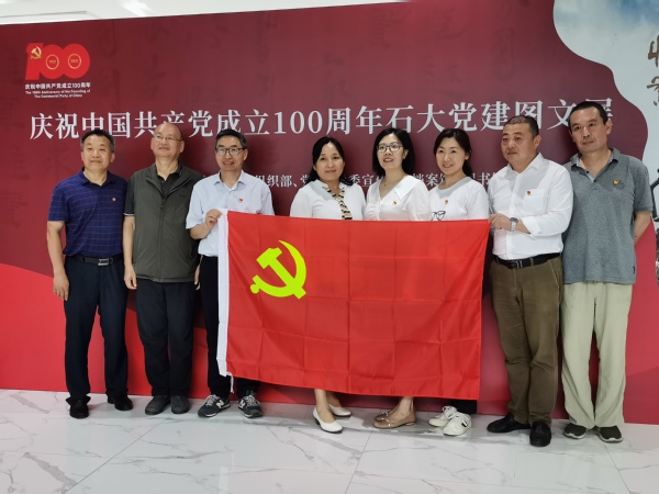 庆祝建党一百周年纪念大会的隆重召开,激发了党员同志们的荣誉感、自豪感、使命感。为了进一步强化党史学习,7月2日,实验教学中心党支部举办了学习党史系列活动,前往学校图书馆新馆参观学习“庆祝中国共产党成立100周年石大党建图文展”。本次活动由党支部书记张淑霞主持,全体党员参加。