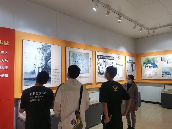 事迹陈列室听讲解 工作人员摄