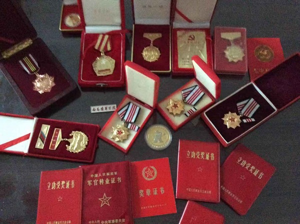 老兵参战后荣获的奖牌与证书 李季平少校家属摄