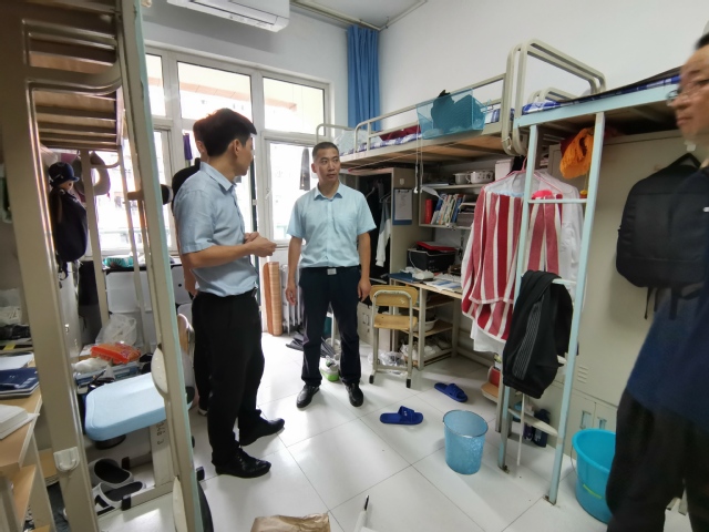 本次检查重点以宿舍内务卫生、是否存在安全隐患、是否存在违禁物品等为主,对各年级宿舍进行了全覆盖检查。针对检查过程中发现的安全、卫生问题,老师们现场提出意见并要求相关宿舍进行整改。检查过程中,老师们亲切地与学生面对面交流,了解学生当前生活状况,对学生在学业、未来规划等方面的疑惑指点迷津,特别是对学生的心理健康情况进行了排查。同时,党委学生工作部(武装部)副部长张程、管理科宗先波老师也参与到宿舍走访中,老师们叮嘱学生不仅要维持好宿舍的环境,更要提高安全防范意识,杜绝安全隐患,严禁使用违规电器、严禁在宿舍为电瓶车充电。