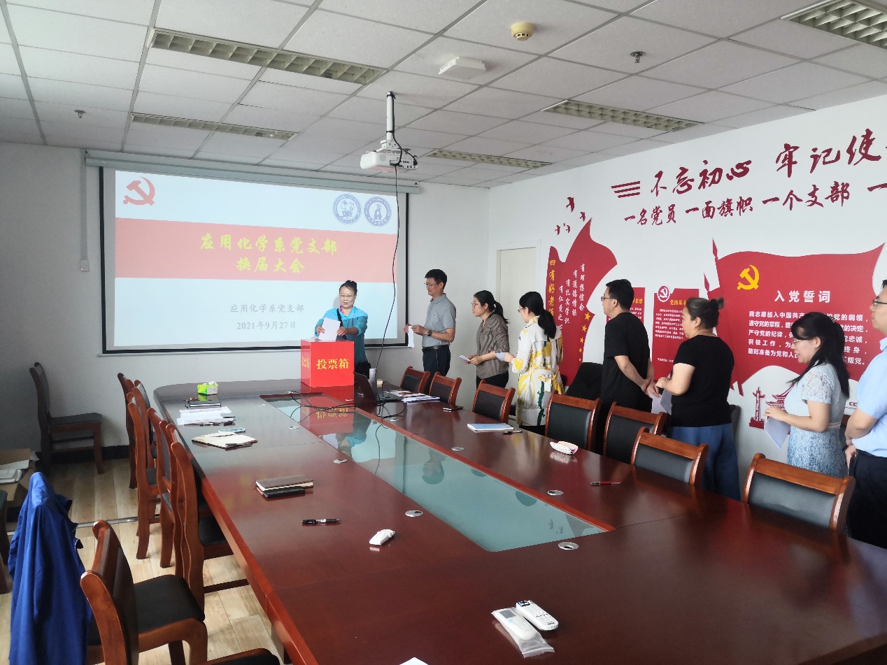 9月27日,应用化学系党支部召开换届选举大会,会议由杨修洁同志主持,支部9名党员参加会议。