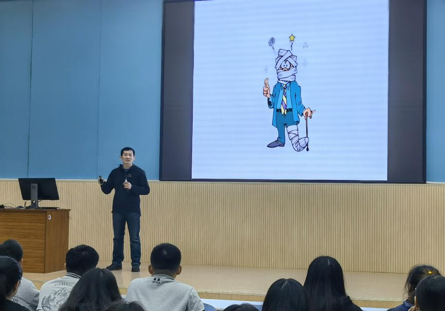 讲座伊始,路帅以所在教室的安全通道为例子,为同学们讲解了在进入实验室或日常生活场所时寻找安全通道的重要性,介绍了火灾类型、灭火器类型及紧急疏散时应注意的事项,要求同学们具有一定面对重大危险事故时的紧急逃生救灾知识。接下来,他以高校近几年所发生的重大实验室安全事故为警示案例,向同学们讲解了事故的发生原因,以及如何避免事故的发生。随后,路帅向同学们具体介绍了危险化学品、易制爆危险化学品、易制毒化学品等化学品术语及其相关知识,告诫同学们在使用化学品时要先了解化学品安全技术说明书。同时,路帅还向同学们介绍了实验室因违规操作导致的的一些其他事故,如触电、灼烫、冻伤和腐蚀等,告诫同学们在实验过程中应严格按照操作规程进行实验。最后,路帅具体讲解了进入实验室前、实验进行中、实验结束后应具体注意事项,以及防护用具的选择和气瓶的使用方法等。