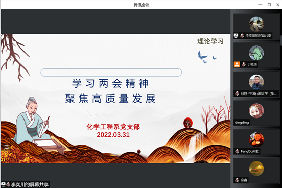 3月31日,化学工程系党支部召开云端组织生活会。会议由支部书记于筱溪主持,支部所有党员参加。