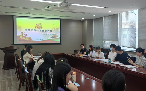 2022年05月31日下午,新型碳材料第一研究生党支部于逸夫楼报告厅召开预备党员转正大会,会议由支部书记程智年主持,应到会有表决权党员18名,实到有表决权党员15名,超过本支部有表决权党员半数以上,符合规定人数,可以开会。