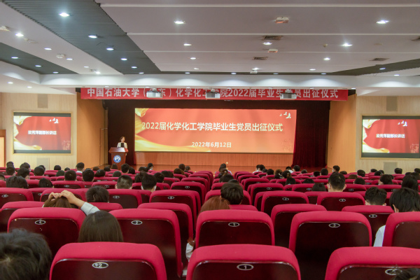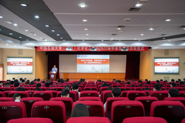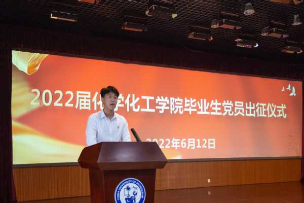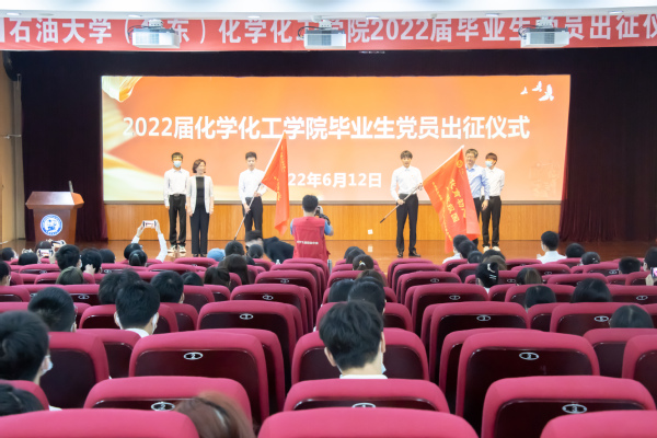 “作为新时代的青年学生,我愿用己所学,为祖国的能源事业添砖加瓦,勤勤恳恳完成工作任务,以自强不息的精神、朝气蓬勃的姿态,奋力谱写中华民族伟大复兴进程中激昂的青春乐章。”2022届本科生杜洪龙在出征仪式上代表毕业生党员发言,他已签约中海油上海分公司,即将奔赴海上平台工作,在艰苦的基层岗位上为祖国石化能源行业贡献青春力量。