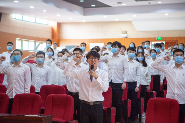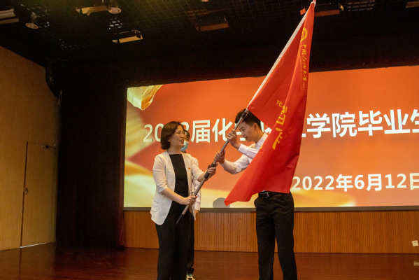 梁秀萍与张永宁分别为2022届本科毕业生党员青年先锋队和研究生党员青年先锋队授旗,旗面上“化育初心 工致报国”八个字是学校学院对青年学生的期许和鼓励,希望石大化院人能在新的院校或岗位上,学先锋、做先锋,开拓奋进、再谱新篇。授旗仪式后,全体党员高举右拳,庄严宣誓:“愿以吾辈之青春,复兴伟大之中华!奋斗正青春,青春献给党!请党放心,强国有我!”