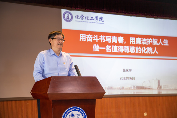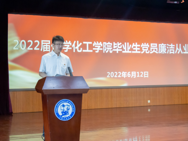 “从决心书里挖掘学院近70年的的厚重历史,传承‘爱党报国’的优良传统,是一种非常好的教育方式,极具仪式感。”活动最后,张永宁以“用奋斗书写青春,用廉洁护航人生,做一名值得尊敬的化院人”为题向即将离开石大的毕业生党员讲授最后一趟党课,他梳理了2022届毕业生不平凡的大学时光,肯定了毕业生党员践行誓言、勇挑重担的优秀表现,他向全体毕业生表示祝贺、祝福和感谢;他带领大家回顾了学院“十三五”期间取得的显著成果,也与同学们一同展望了学院“十四五”期间的发展蓝图。