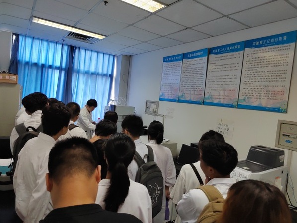 为了保证较好的参观学习体验,党支部提前规划好路线,进行了错时参观。各队老师先带领学生参观了环境微生物、生物修复、环境催化、环境材料、水污染控制、环境分析等科研实验室。在科研实验室,分别由博士生、硕士生对各个科研团队的科研方向、实验室进行的项目研究、实验仪器原理和操作等进行了详细讲解。学生们对各种专业设备和精密仪器充满了好奇,并积极地向学长学姐提问,与带队老师进行交流学习。科研实验室的参观,帮助大一学生对环境与安全工程系的科研方向有了大体了解,也为本科生对大创项目的申请有积极促进作用。