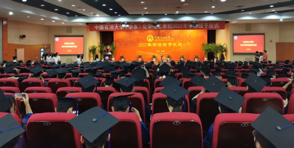 学院学位评定分委员会主席、院长刘欣梅教授,副院长刘东教授、刘义教授,环境与安全工程系刘芳教授,生物与能源化工系黄方教授、化学系曾景斌教授为341名研究生、474名本科生授予学位,党委书记张永宁同志、教授委员会主任田原宇教授、各系(室、中心)负责人及教师代表出席观礼,共同见证2022届毕业生开启人生新征程。