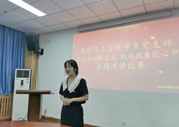 为重温党的光辉历程,歌颂党的伟大成就,继承和发扬党的优良传统,进一步推进廉政文化建设,引导青年学生学党史、强信念、跟党走,6月23日,学院在工科A121成功举办学生党支部“不忘初心跟党走,勤政德廉记心中”主题演讲比赛。学院团委书记魏孟吉、辅导员栾琳到场观赛并担任评委。比赛由张一波同学主持。
