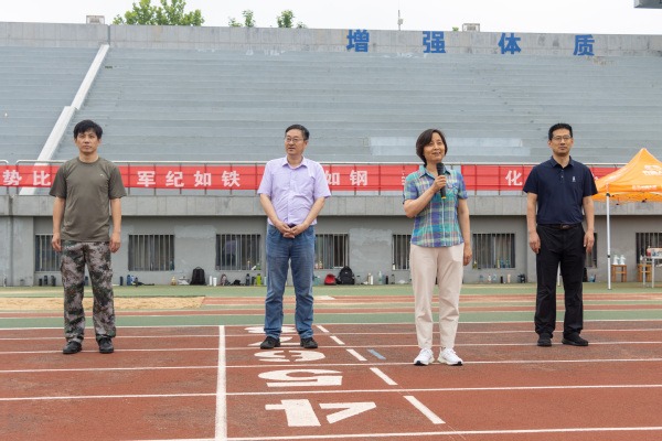 首先,刘欣梅院长发表讲话,她谈到了自己求学时去往军营里参训亲身经历,真切地讲述了军营中苦乐共存的生活,并就“军训的意义”与学生们进行交流。她指出:“军训是一门特殊的必修课,与其他的课程大不相同。在军训过程中,同学们要磨砺自己坚强的意志,充分发扬不怕苦、不怕累的精神内涵,厚植家国情怀、爱国主义精神,成长为有责任、有担当的新时代青年。”刘院长的讲话引起现场雷鸣般的掌声,得到在场学生的恳切认同。刘院长希望化院学生能牢牢把握住军训这个锻炼契机,在军训中挑战自我、突破极限,成为更好的自己。