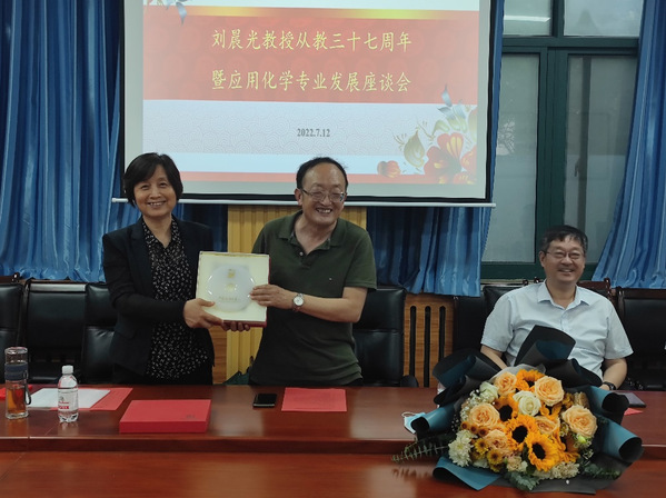 “一支粉笔、两袖清风、三尺讲台、四季耕耘”是从教三十七周年的真实写照,感谢刘晨光教授的付出,祝福刘晨光教授在合理、科学安排好退休生活的同时,继续为应用化学专业的高质量发展献言献策。我们也有理由相信在一代代应化人的努力下,会将应用化学国家一流本科专业建设得更好。