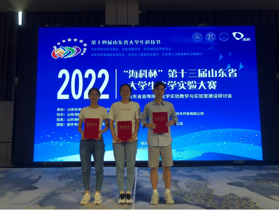 作为我省高等(职)院校化学学科本科生最高级别赛事,山东省大学生化学实验大赛每年举办1次,目前已成功举办十三届,该赛事旨在推动我省高等学校化学实验教学模式、内容、方法的改革,探索培养创新型化学人才的思路和途径,以提高我省高素质化学化工人才培养的总体水平。我校在本届比赛中获得2个一等奖、1个二等奖的优异成绩,与历史最佳成绩齐平,也反映了我校化学学科基础教学在全省的优势地位和扎实水平。