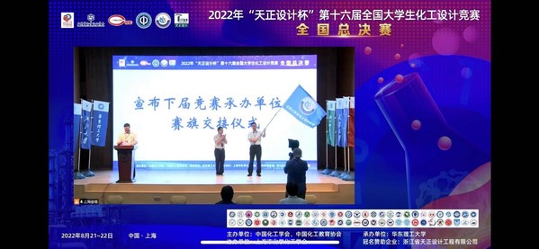 近年来,我校立足国家能源战略,充分发挥学科优势,主动做好相关赛事的组织、培训、与选拔工作,积极引导大学生强化工程意识、提高创新能力。经中国化工学会、中国化工教育协会审批,2023年我校将承办第十七届全国大学生化工设计竞赛总决赛,yl6809永利YL集团刘义副院长到华东理工大学参加了赛旗交接仪式,并作为下届总决赛承办方代表进行发言。