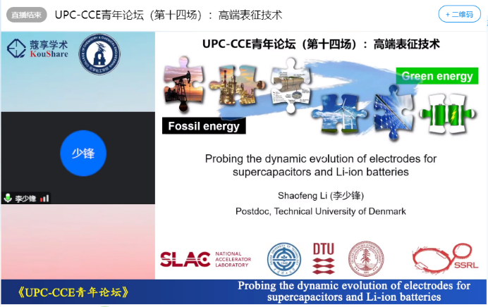 闫鹏飞教授介绍了其课题组利用透射电子显微镜对几种典型掺杂元素演变规律的研究,在此基础上提出了稳定高压正极材料的全新设计理念。张大梁教授主要聚焦敏感晶体材料的离子加工和原子分辨成像,针对电子束敏感材料的表征难题探索出了一套行之有效的弱光拍摄技术,并成功实现技术转化,极大拓展了透射电镜的应用领域。李少锋博士针对电极材料快速充放电过程中的严重比容量损失和使役过程中未知的结构重构,利用原位同步辐射吸收谱学、全场成像和纳米探针技术,揭示了电极材料表面-体相耦合效应的实质,为开发高性能电极材料提供了理论指导。