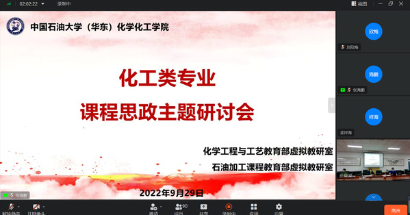 在专家报告环节中,全国党建工作样板支部书记、广东石油化工学院邓益强副教授作了题为《党建引领促进产学研,把科研做在祖国大地上》的报告,详细介绍了广东石油化工学院化学工程与工艺专业将党建工作和课程思政建设工作紧密结合的工作经验,强调了党支部建设在培养任课教师课程思政能力建设方面的重要作用。中国石油大学(北京)孟祥海教授作了题为《石油加工课程思政的思考与实践》的报告,从团队建设、课程建设、思政设计、思政案例、教学实践等多个方面详细介绍了石油加工课程的建设经验,并为行业特色课程思政教学范式提供了许多生动的典型案例。yl6809永利检测中心张海鹏副教授作了题为《化工原理课程思政建设与实践》的报告,提出要充分提炼课程中蕴含的文化基因以及价值理念,梳理课程内容与思政元素的结合方式,倾听学生心声,善于运用学生易于接受的教学方法开展课程思政的重要性,为学生营造潜移默化的教学环境,做到“润物细无声”。在会议自由讨论阶段,参会教师踊跃发言,讨论了各自在课程思政建设方面的心得体会,围绕如何分享不同院校、不同课程之间的先进经验、如何提高学生参与课程思政的积极性、如何有机融合专业教学与课程思政、共建共享课程思政案例等具体问题展开研讨,取得了一系列重要共识。