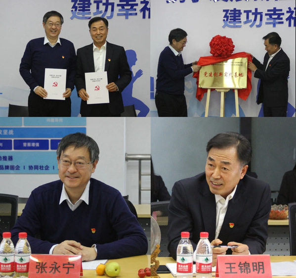 随后,校企双方围绕近期学习党的二十大精神的感悟、人才队伍建设和青年人才对接等方面开展交流座谈,表示要不断将好的想法、举措落地生根,助推校企共同发展。四位石大毕业生皮鹤鸣、任心月、翟东启和王艳阳作为员工代表,结合在石大的学习经历和在中化山东石油的职业发展经历,分享了他们工作中综合能力提升和职业生涯的感受与体会,深切表达了对母校的培育之恩。并结合自身学习与工作经历,从培养方案、课程设置、社团锻炼和就业指导等方面为母校学生培养提出了中肯的建议。与会教师对毕业生在岗位上取得成绩和精彩分享给予高度赞扬,并就相关建议做出真切的解答,交流氛围热烈融洽。最后,张永宁和王锦明代表双方签订了《“党建引领·校企共建”战略合作协议》,为党建创新实践基地揭牌,并对双方党建共建、管理优化、人才培养、队伍建设等方面的后续合作提出了具体要求和期望。张永宁充分肯定了中化山东石油“有温度、有高度、有深度”的企业文化和党建工作,邀请校友回母校“现身说法”分享其成长经历,发挥朋辈引领作用。他表示,未来要把双方合作推向新的高度,本着“党建引领、优势互补、开放合作、共谋发展”的原则建立长效战略合作,使“党建创新实践基地”成为学院开展实习工作和培养学生创新实践能力的重要支撑平台,助力学生高质量培养。