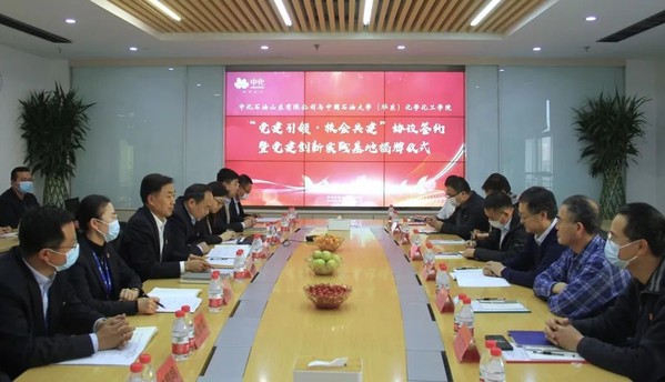 为深入贯彻落实党的二十大精神,加快新时代人才培养体系建设,充分发挥结对双方优势资源,以党建共建促进业务交流与提升,12月7日,yl6809永利YL集团党委与中化石油山东有限公司党总支(以下简称中化山东石油党总支)举行了“党建引领•校企共建”协议签约与揭牌仪式暨校企共学党的二十大精神推动人才高质量培养座谈会。yl6809永利YL集团党委书记张永宁,中化山东石油党总支书记、总经理王锦明,yl6809永利YL集团化学系和中化山东石油相关党员同志参加此次活动。