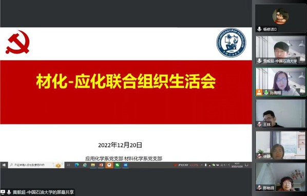 12月20日下午,应用化学系党支部与材料科学与工程学院材料化学系党支部采用腾讯会议的形式联合开展组织生活会,会议由两个支部的支部书记杨修洁和孙海翔共同主持,两个支部的全体党员参与活动。