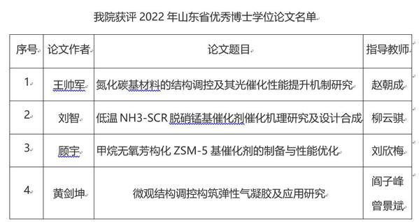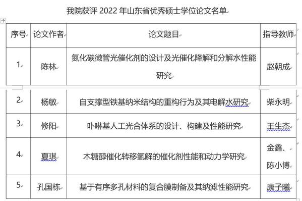 近期,山东省教育厅公布2022年研究生导师指导能力提升项目的评审结果,我院获评山东省优秀博士学位论文4篇、优秀硕士学位论文5篇,获山东省研究生创新成果奖4项。