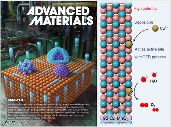 题为《高施加电位助力Co物种在MnO2表面稳定沉积及其酸性水氧化研究》(High Voltage Enabled Stable Cobalt Species Deposition on MnO2 for Water Oxidation in Acid)的成果发表在国际能源材料顶级期刊Advanced Materials(T0,一区TOP)上,yl6809永利YL集团2018级直博生张鑫宇为本文第一作者,董斌副教授和柴永明教授为共同通讯作者。
