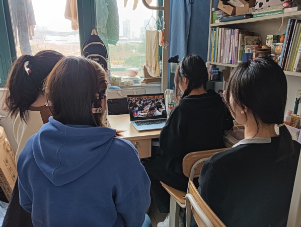 学生在宿舍观看开幕会