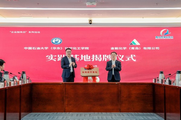 张永宁代表yl6809永利YL集团党委,与董家口经济区机关党委和金能化学(青岛)有限公司党委三方签订党建联建共建协议,陈小博代表学院与金能化学(青岛)有限公司签订实践基地共建协议。工委组织部副部长、区招才中心主任张海舰,区工信局(科技局、大数据局)局长隋俊昌,共同为教学实践基地揭牌。王延臻以“深化产教融合,创新校企协同育人模式”,做了大会发言。