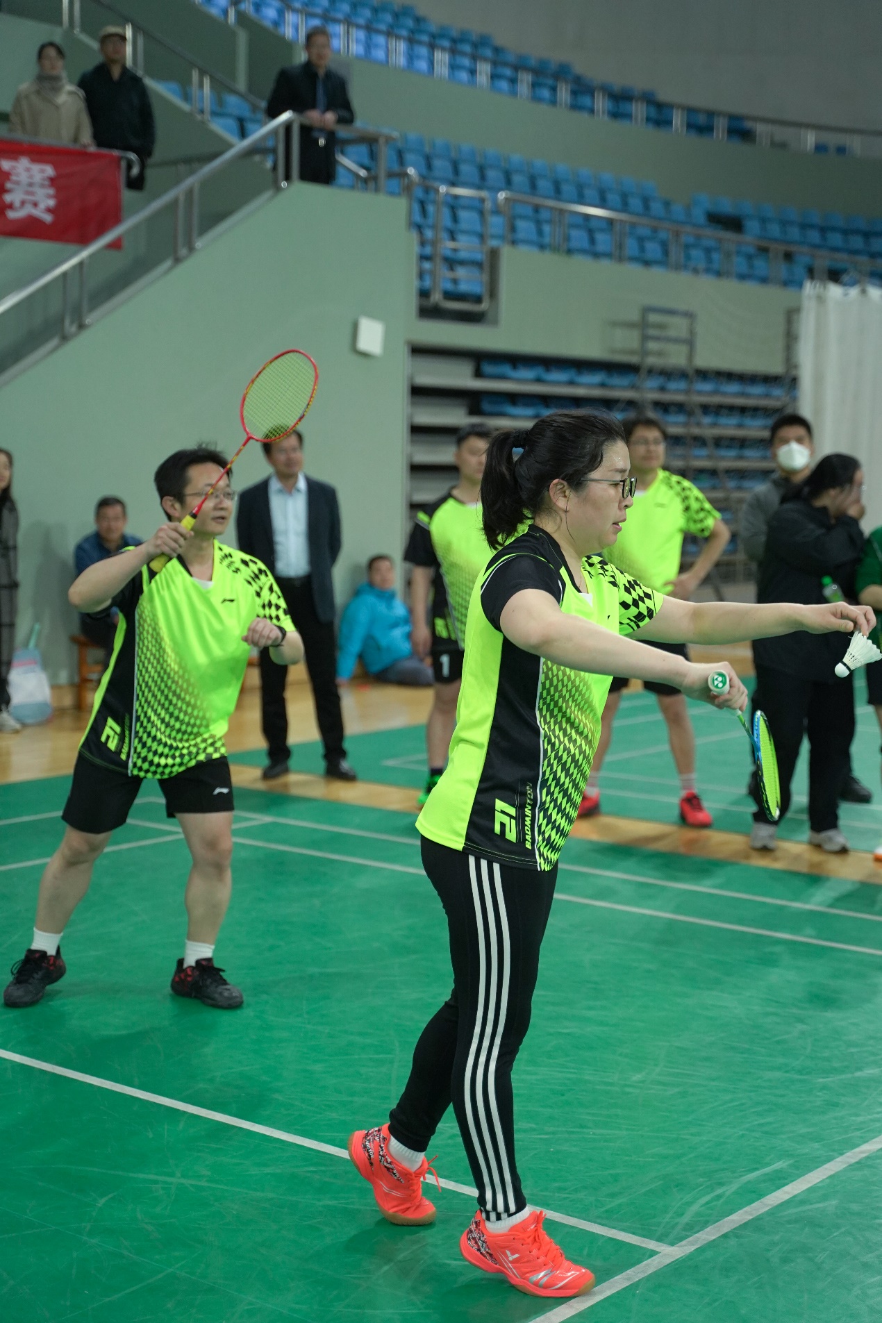 本次比赛由学校工会主办、教职工羽毛球协会承办,共有17个单位的180余名运动员参加此次比赛。本次比赛为混合团体赛:采用“五羽轮比”赛制,每队每场派7名运动员轮流上场进行双打比赛。