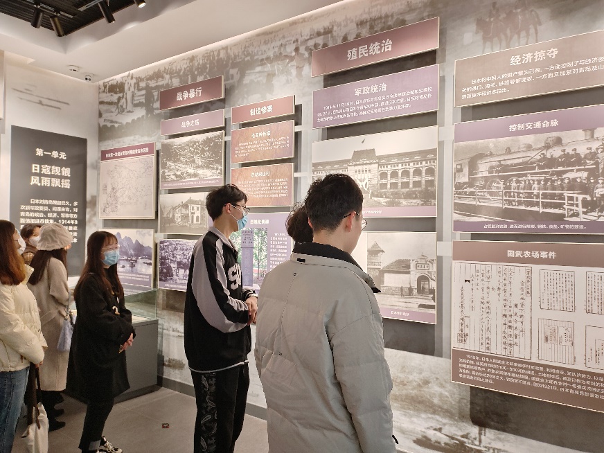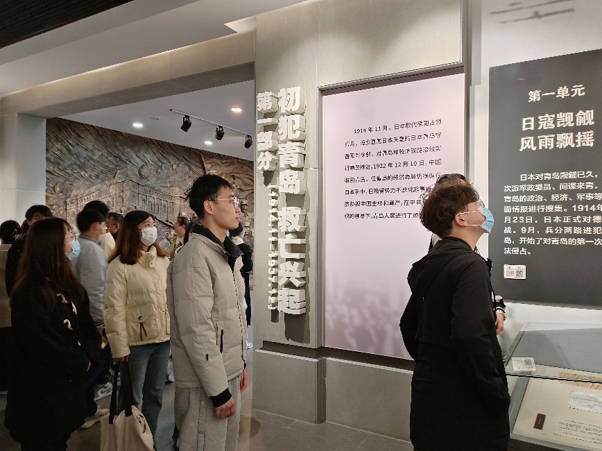 一行人在馆内讲解员的带领下,依次参观抗战馆和军魂馆。抗战馆以“铭记”为主题,陈展青岛两次被日本侵占长达16年战争罪行历史图片以及青岛军民抗战的历史;军魂馆以“破晓”为主题,主要陈展抗战胜利后青岛党组织领导的地下斗争以及开展护厂、护市、护校等英勇斗争。在馆内参观时,党员同志们还遇到了前来祭奠战友的老兵,大家通过他们的讲述,了解了他们英勇的战斗故事和伟大的革命精神。