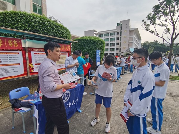 广东地区经济发达,教育资源丰富,生源质量良好,是我校重点生源省份之一。为确保招生宣传工作效果,学院招生工作小组临行前认真学习了学校招生宣讲材料,总结梳理了学校的优势、特色,深入了解了近年来广东地区招生情况及学生发展情况,为此次招生宣传工作做了充分准备。此次招生宣传共走访了深圳大学附属中学、惠州一中、佛山市南海中学、顺德李兆基中学、广州实验外语学校、湛江市第一中学、茂名市第一中学、信宜中学、阳江市第一中学、珠海市第二中学,发放学校招生宣传册1200余份,建立一个优秀生源基地,接受现场咨询800余人。