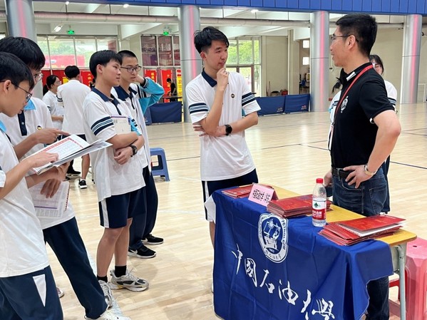 在深圳大学附属中学咨询现场,张永宁与前来咨询的学生家长亲切交流,声情并茂的介绍了学校的优势和特色,耐心解答了学生家长关心的问题。郭孟面向学生家长以“来青岛遇见山海,来石大预见未来”为题,围绕学校概况、人才培养、专业学科、生活学习、就业发展、招生情况等进行了宣传宣讲。在惠州一中,张永宁参加了高校招生宣讲座谈会,并代表学校与惠州一中签订优秀生源基地建设协议。徐光辉在咨询现场认真解答学生关心的问题,并着重从行业发展、地域优势、大学生活等方面与前来咨询的同学进行了深入交流。在珠海市第二中学,张庆冬为学生家长答疑解惑,在学校两校区、优势学科、招生政策、就业情况、转专业政策等方面进行了介绍与解答。在湛江市第一中学,王明与学生交流了学生关心的宿舍环境、录取名次、文理科适合专业、就业方向等情况。