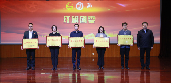 党委副书记马国顺为获评“五四红旗团委”的学院颁奖