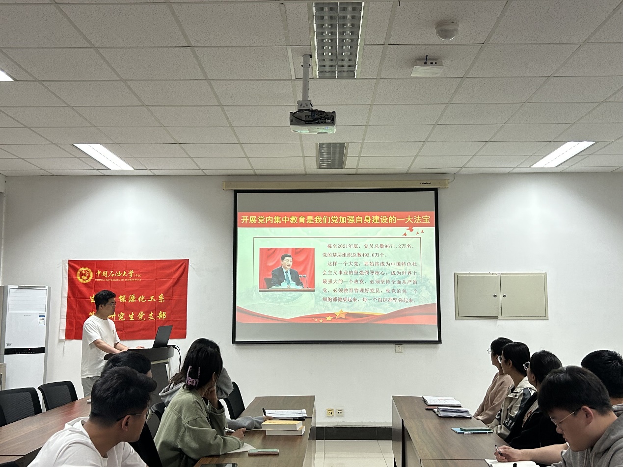 为深入开展学习贯彻习近平新时代中国特色社会主义思想主题教育,强化党的创新理论武装,发挥党员同志的示范带动作用,2023年5月21日晚19点,生物与能源化工系研究生第二学生党支部于逸夫楼340召开学习贯彻习近平新时代中国特色社会主义思想主题教育,通过集中学习,切实提高理论素养、增强能力本领。本次主题教育由支部书记虎祥同志主持。
