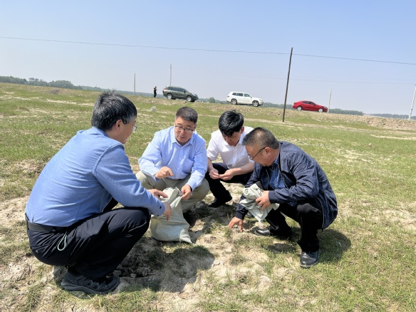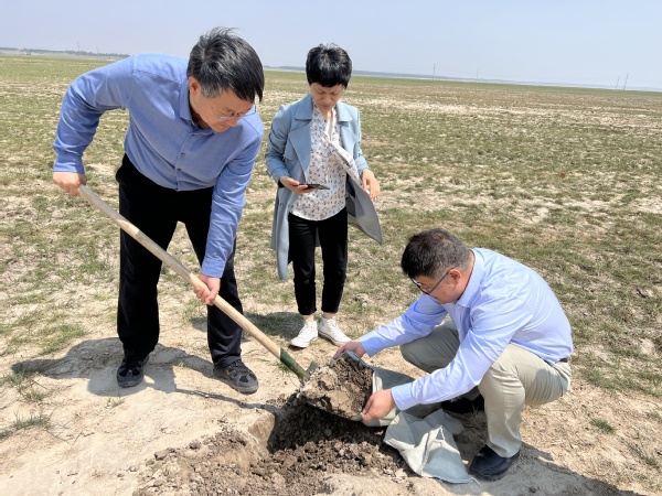 5月26日上午,学院一行与科左后旗自然资源局前往盐碱地进行实地考察,田原宇教授进行了实地检测,并现场采取了6份不同的土壤样品带回实验室进行检测与改良,土壤样品的检测与改良成果将反馈给科左后旗政府,并为科左后旗的盐碱地土壤改良提供理论支持和技术支撑。