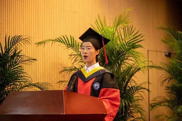 学位授予环节结束,获得博士学位的优秀研究生毕业生代表王小珊同学、获得学士学位的优秀本科生毕业生代表吴尧同学分别发言,表达他们对母校的不舍和感恩,送上他们对母校最真挚的祝福。