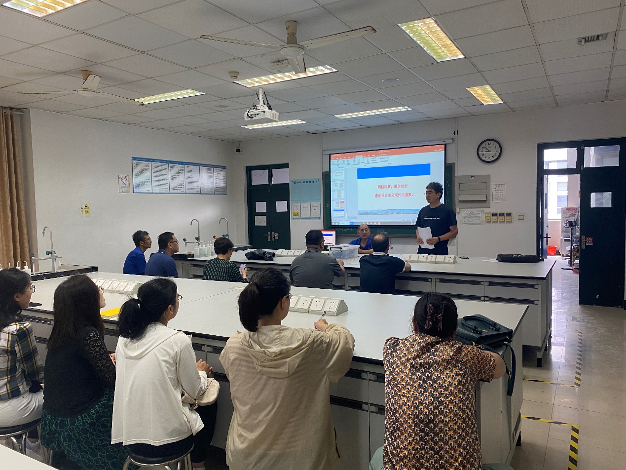 在党课环节中,支部书记王创业以“青岛历史传承与高质量发展之路”为主线,详细阐述了“五四运动”以来青岛市的发展历程、在中国式现代化进程中的重要贡献、以及党的领导在城市发展过程中的伟大领导作用。结合青岛市在教育领域、科技创新、产业升级和人才培养方面的发展、规划与学校的办学定位,激励同志们“躬耕科教、服务社会、建设社会主义现代化国家”。