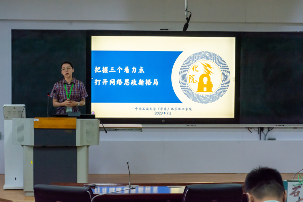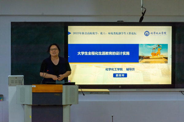 为共同探讨学生思政工作助力高质量人才培养的有效途径,促进校际交流和经验共享,7月7日,yl6809永利YL集团举办2023年驻青高校化学、化工、环境类院部学生工作论坛,以“大学生思想政治工作的融合创新”为主题,通过主题报告、专题分享、集中研讨等形式,提升学生工作队伍的素质能力,增强思想政治工作的针对性、实效性。来自中国海洋大学、青岛大学、山东科技大学、青岛科技大学、青岛理工大学等5所高校8个院部的40余名辅导员和学生干部参加论坛。