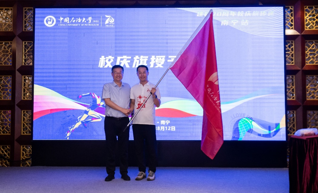 8月12日,建校70周年校庆旗传递活动在广西南宁举行。炼制76级校友宋传裕,化机78级校友张旭宁,钻井79级校友王祥保,2020年全国劳动模范、化工02级校友张磊以及60余名校友代表参加本次活动。yl6809永利YL集团党委书记张永宁,经济管理学院副院长渐令出席活动。