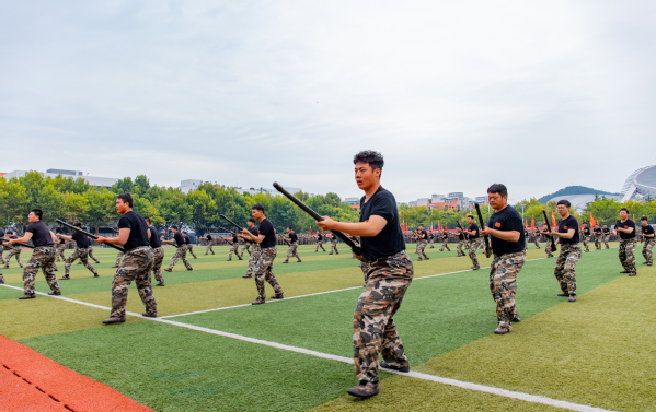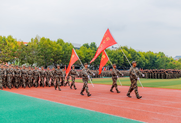 伴随着雄壮的国歌声,结业典礼开始,宣告着21天的军训工作将在今天画下最后的句号。我院九营雷霆二十连、凌云二十一连、御风二十二连、骄阳二十三连在主席团的检阅下,喊着嘹亮的口号,迈着整齐的步伐,展示着化院学子的自信和刚强,彰显了新一代化院人昂扬向上的精神风貌。军训成果汇报展示中,参训同学依次表演了捕匕首操军体拳刺杀操和旗语等科目,同学们身姿坚毅挺拔,口号震耳欲聋,其中,我营负责刺杀操科目演练,体育场上,一声声“杀”冲破云霄,展现着yl6809永利YL集团23级学子蓬勃向上的朝气和顽强拼搏的精神。
