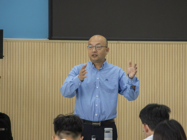 杨涛就当今能源的发展现状向参加人员提出疑问,引导大家深入思考。他结合自身乐观的心态,讲述了能源转型大潮中眼界及看法的重要性。关于从业人员的消费市场及其结构板块,他指出,现阶段百分之七十的能源是煤和天然气,但光伏材料的节能优点和高速发展使得多数企业的需求发生大幅度改变。他希望同学们留意能源转型的进度,特别是氢能源。杨涛联系化工企业的发展经验模式、生产制造窗口、长途运输过程三方面,讲述了高质量达标的要求和能源转型的大趋势,呼吁参加人员为能源全面转型贡献力量。