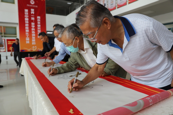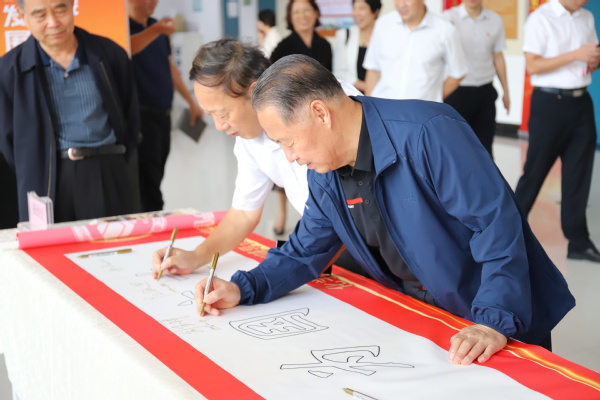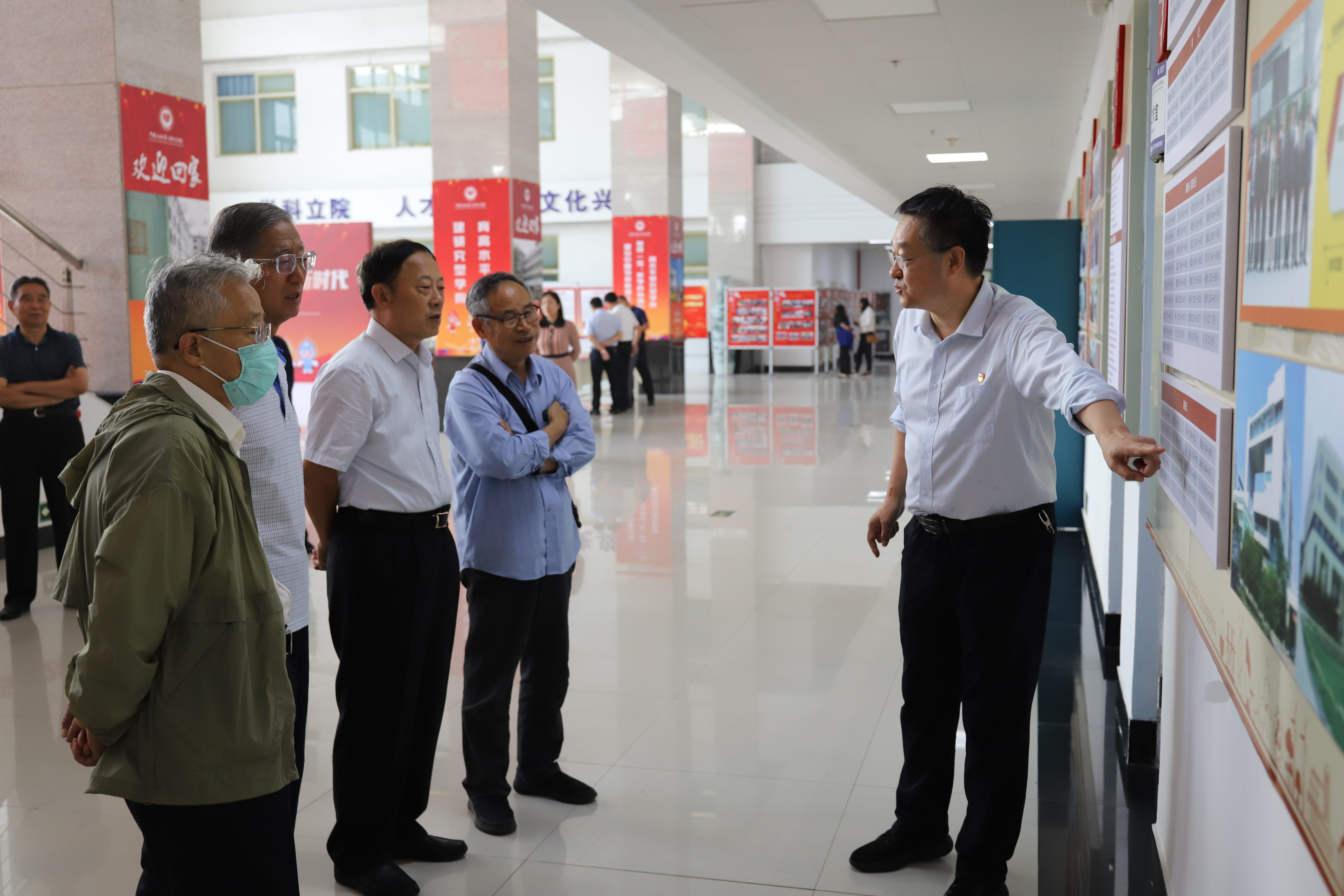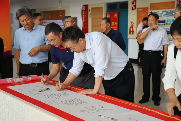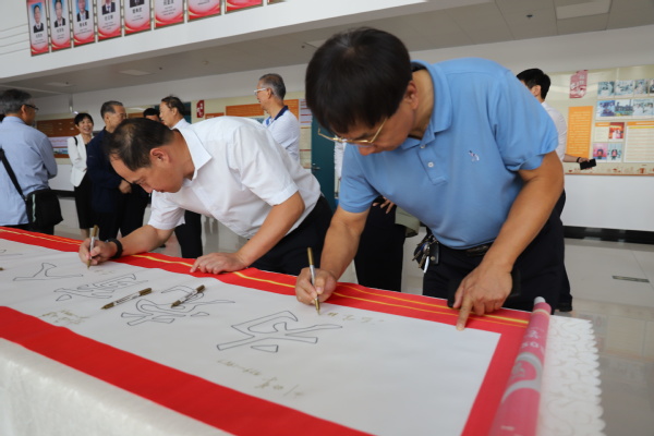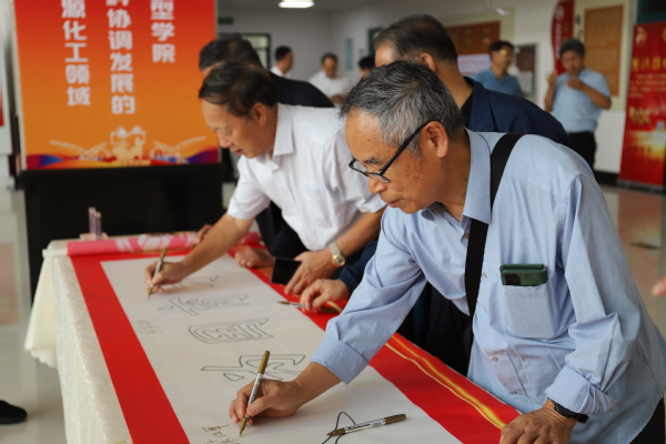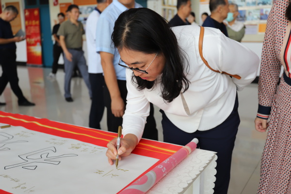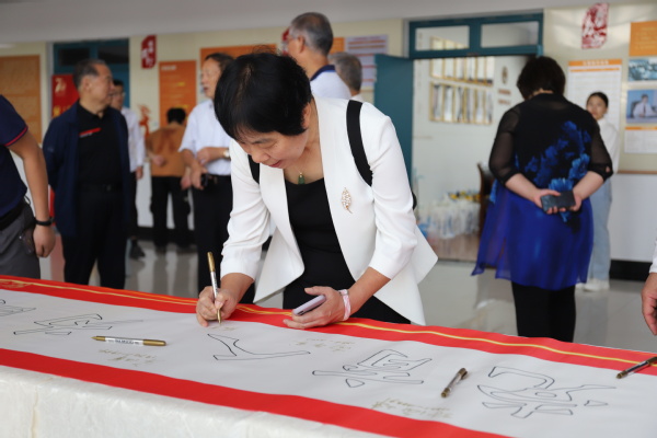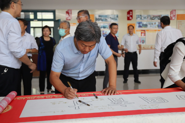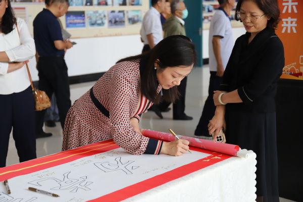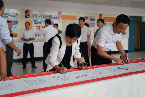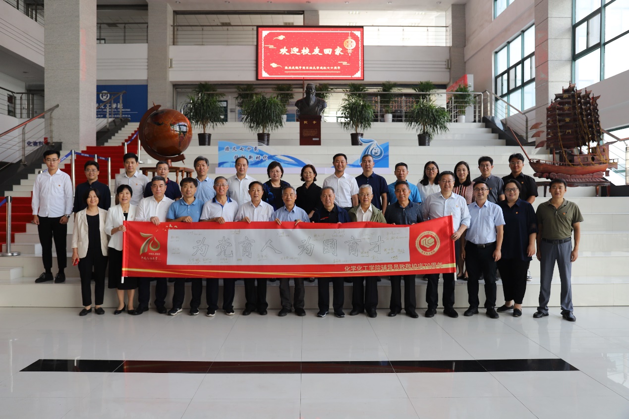座谈开始前,学院党委书记张永宁带领各位校友共同参观学院主题文化墙,共同回顾学院的发展历程,随后校友们纷纷在“为党育人、为国育才”的字幅签名并合影留念。