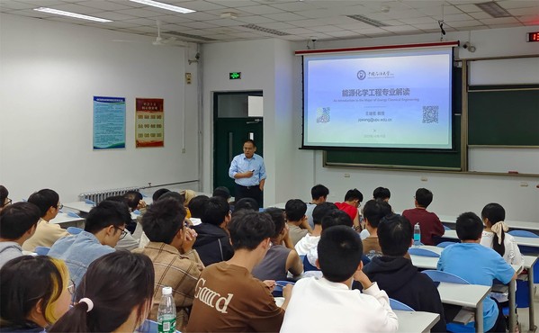 介绍会开始之初,王继乾首先介绍了能源化学工程专业的基本概况,让同学们对本专业先有一个较为完整的了解。然后王继乾介绍了本专业的课程设置、师资力量以及各位老师的研究方向,让各位同学对未来的研究方向有了一个初步的认知。最后,王继乾分享了宝贵的经验,指出要同学们学会分享,共同进步,以帮助同学们更好的适应新的学习生活。