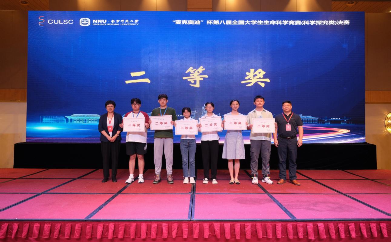 2023年8月16日至18日,第八届全国大学生生命科学竞赛(科学探究类)全国决赛于南京师范大学主赛场顺利召开。在我院葛保胜老师的指导下,王欣、李玉颖、王胜杰、贺伟剑、张春旺5位本科生历经十一月辛苦工作,依次完成了参赛项目《光碳调控螺旋藻的高效培养及机理探索》的研究综述、实验设计、实验记录、论文、心得的撰写。并经过网评和山东省赛区的激烈角逐,队伍脱颖而出,斩获山东赛区一等奖并入围全国决赛,最终获得全国决赛二等奖。