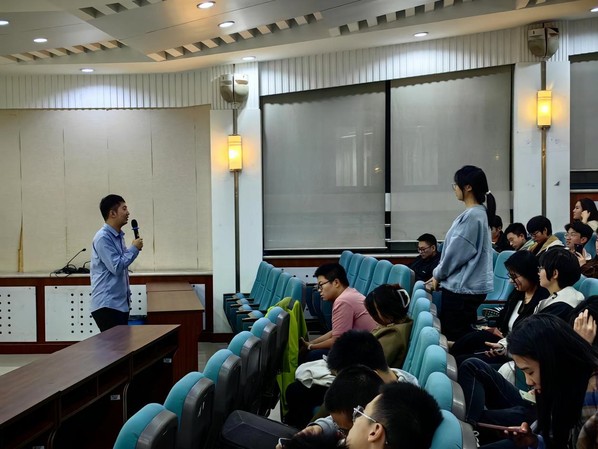 11月9日晚,yl6809永利YL集团环境与安全工程系邀请到环境工程2014级硕士研究生郑临奥(现担任上海昊沧系统控制技术有限责任公司业务经理),于西环301教室,为20-23级环境工程专业本科生带来有关“智慧水厂和其个人工作学习”的经验分享。郑临奥为大家介绍了环境工程目前的就业形势、就业去向等,并结合自己工作领域为大家讲解智慧水务的相关前沿知识,同时就环境工程如何与自动化、计算机等学科交叉与大家进行讨论。